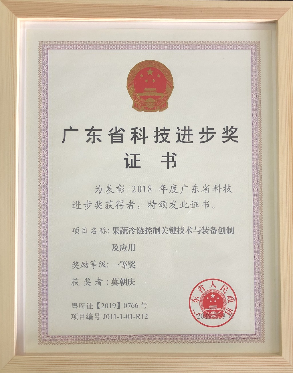广东省人民政府关于颁发2018年度