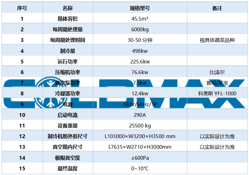 特别注意:真空预冷可以对雨天采收的果蔬表面去水,可以使果蔬表面的小创伤“愈合” 减少微生物侵入的机会!