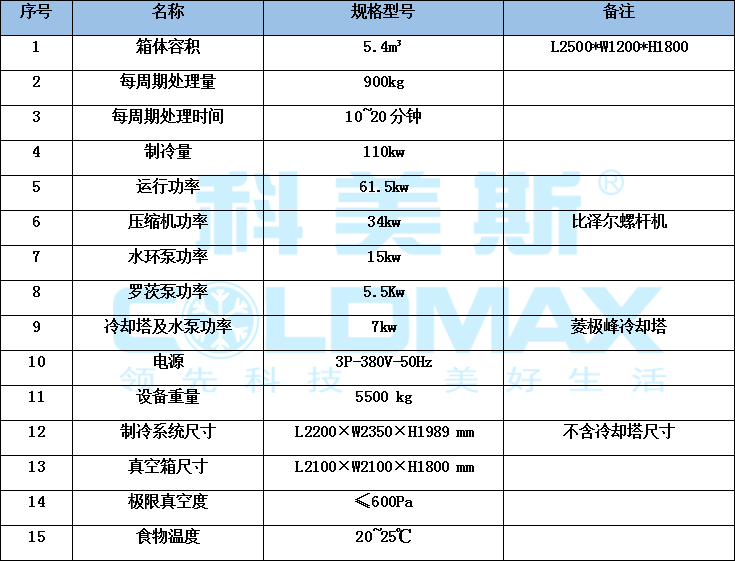 CVF-900 型号食品快速冷却机每周期处理食品量为900kg,处理时间10~20分钟;