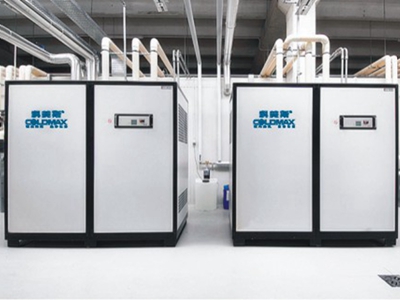 碳分子筛脱氧机是气调库的另一种降氧手段。脱氧机选用碳分子筛和真空泵为主要部件,具有高吸附效率的碳分子筛对空气进行氮氧分离,有功耗低、工作稳定可靠的特点。