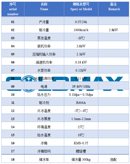 CFF-0.5A 片冰机设计参数: