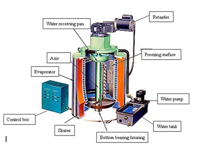 制冰系统采用微电脑全自动控制.缺水、反转、冰满,刮冰、高压、低压等故障数据反馈到PLC电脑程序内,再由微电脑自动处理后,显示到电控触摸屏,人机一体设计理念,让操控、维护变得随心而动,蒸发器采用SUS316不锈钢或碳钢镀铬铸造而成,海水制冰系采用防腐蚀316不锈钢材质和玻璃纤维表面处理工艺内部螺旋槽结构设计V型坡口焊接技术,蒸发器进行了高温退火工艺,消除了钢材内应力,内部烤漆处理,使流道焊接点定型,减少产生氟利昂泄露现象,设备长期使用过程中,低温低压下保持形状大大提高了蒸发器和制冰系统的整体使用寿命。