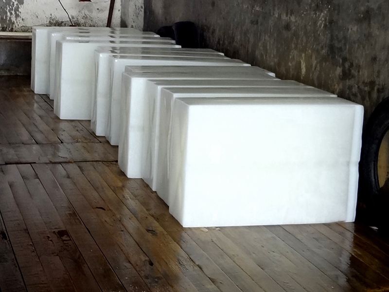 块冰机是制冰机中的一种,所制出的冰块是冰类产品中外形尺寸较大,与外界的接触面积小,不容易融化.可根据不同要求粉碎成各种形式的冰块.适用于冰雕、冰块储存海运、海上捕捞等. 粉碎后可以用于所有用冰的场所.但冰经过粉碎后,会部分融化,冰量损耗.冰块可以分为透明冰块和乳白色冰块。