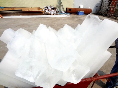 块冰机是制冰机中的一种,所制出的冰块是冰类产品中外形尺寸较大,与外界的接触面积小,不容易融化.可根据不同要求粉碎成各种形式的冰块.适用于冰雕、冰块储存海运、海上捕捞等. 粉碎后可以用于所有用冰的场所.但冰经过粉碎后,会部分融化,冰量损耗.冰块可以分为透明冰块和乳白色冰块。