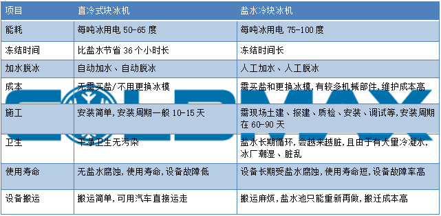 直冷式块冰机相对盐水冷块冰机优势