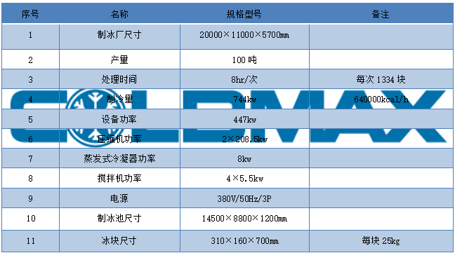 CBM-100A 日产100吨氨制冷块冰机产品参数: