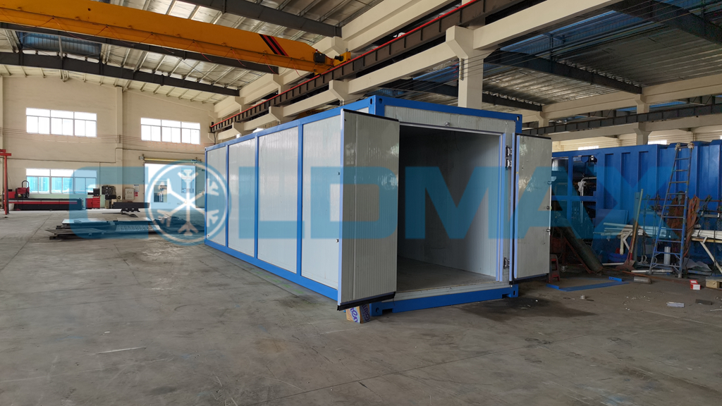本项目为一套标准9.6米厢式保温货柜及配套的制冷系统和压差系统组成,每次进货量为5吨,主要功能为将果蔬快速降温的设备。