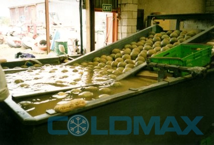 冷水预冷是以水为介质的一种冷却方式,将果蔬浸在冷水中或者用冷水冲淋,达到降温的目的。冷水(一般在3℃左右)和自来水两种,前者冷却效果好,后者生产费用低。目前使用的水冷却方式由水池和传送带系统完成。水冷却降温速度快,产品失水少,但要防止冷却水对果蔬的污染。因此,应该在冷却水中加入一些防腐药剂,以减少病源微生物的交叉感染。商业上 适合于用水冷却的果蔬有柑橘、胡萝卜、芹菜、甜玉米、网纹甜瓜、菜豆等。