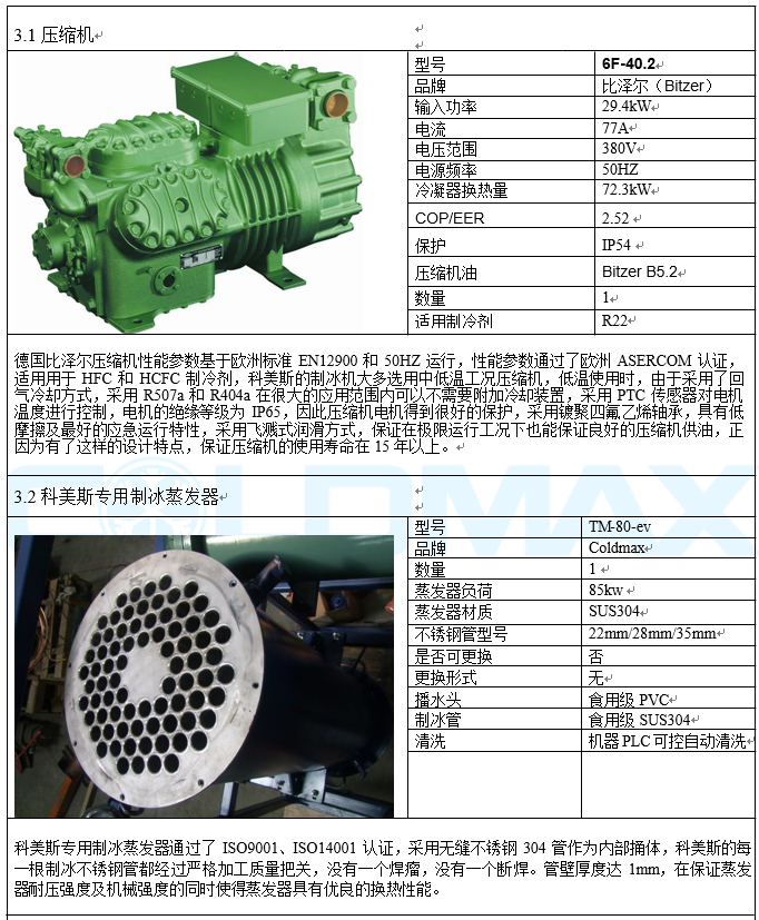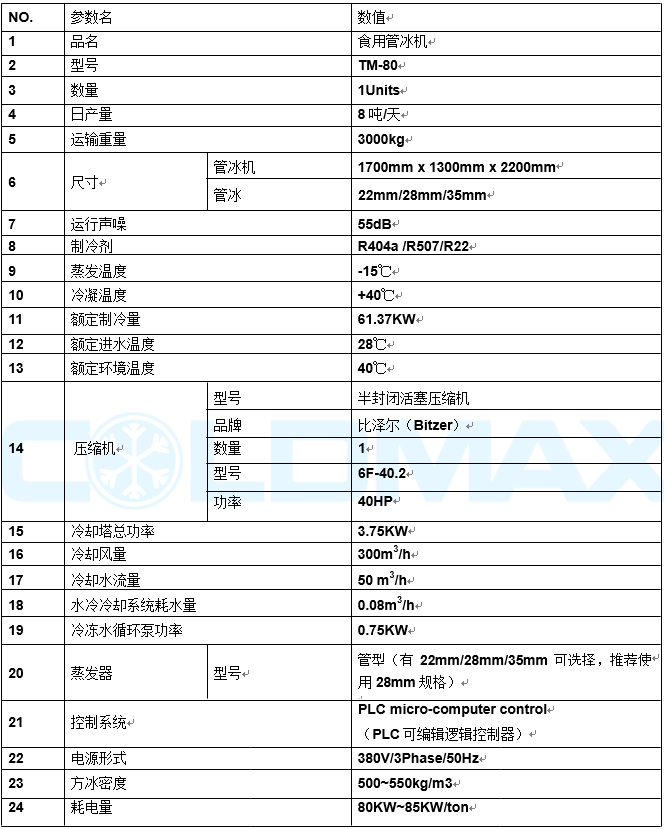 1. CTM-80 食用制冰机的整体描述: 管冰机,制冰机,制冰系统,制冷系统,制冰保鲜