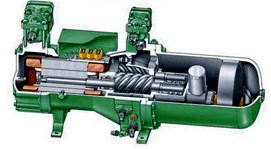 螺杆式冷媒压缩机,它在前两代压缩机技术、经验的基础上发展起来的高效率机型, 此系列压缩机是专为冷冻系统之应用而开发,对冷冻、冷藏、及制冰系统等应用场所皆能提供高效率及高信赖度的压缩机。