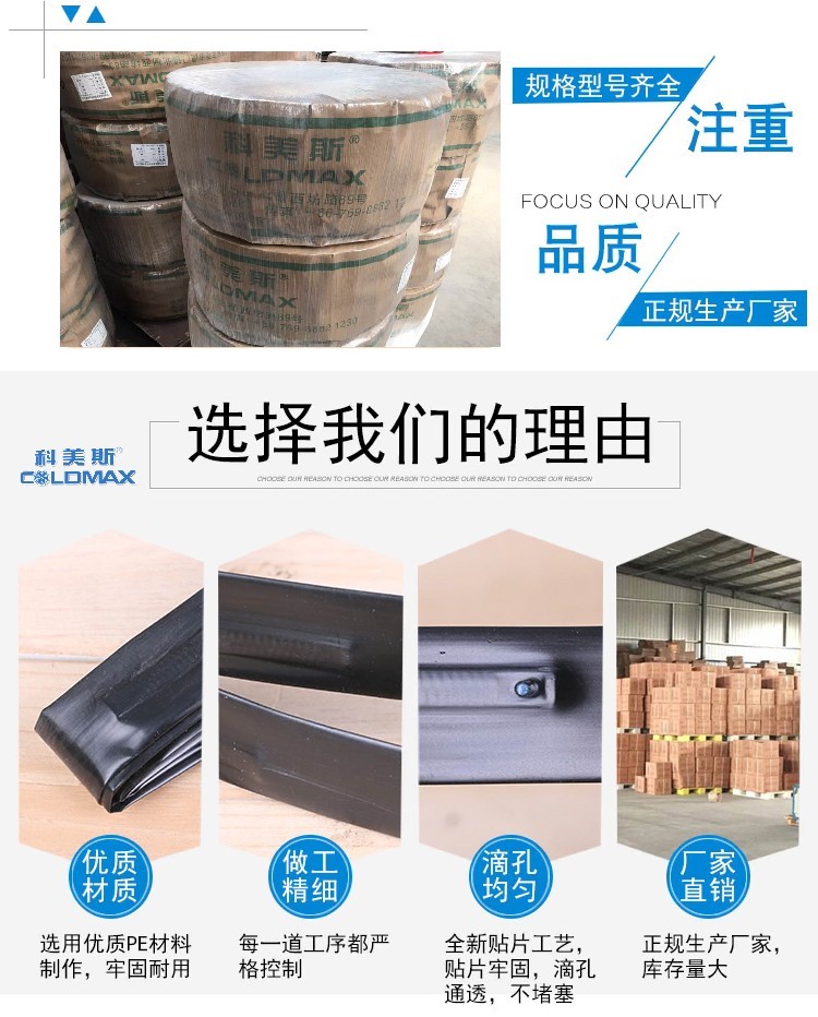 公司所有滴灌带产品都严格按照中华人民共和国国家标准GB/T 19812.3----2008执行生产,全部使用中石化、中石油