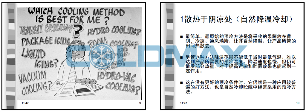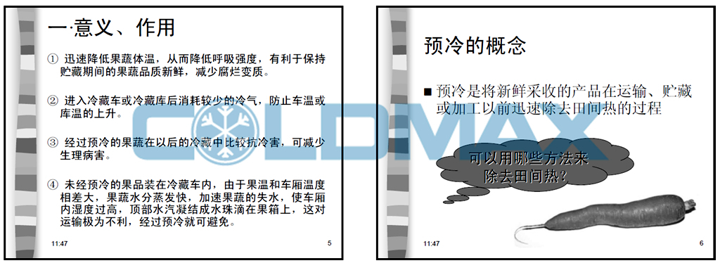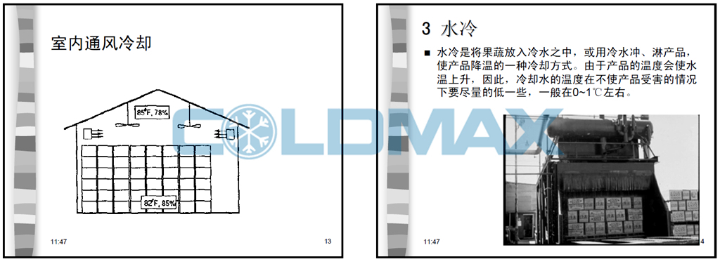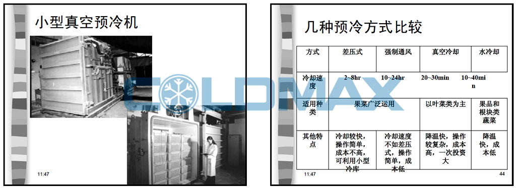 4. 储存现场:场地有限多采用真空预冷以达到快速周转出货,减少场地的使用; 场地宽阔则可多建冷库分散预冷;