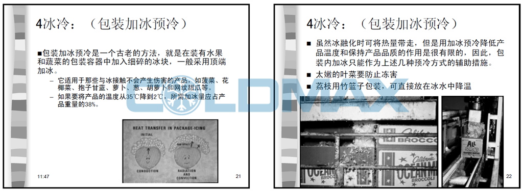特殊的品种如荔枝,由于真空预冷会将果实的水份压出而口感不好,则多采用冰水预冷;但个别的荔枝品种又不能泡水,则只能采用风冷;(太阳成集团tyc122cc入口现正攻关真空预冷配套的预冷方案)