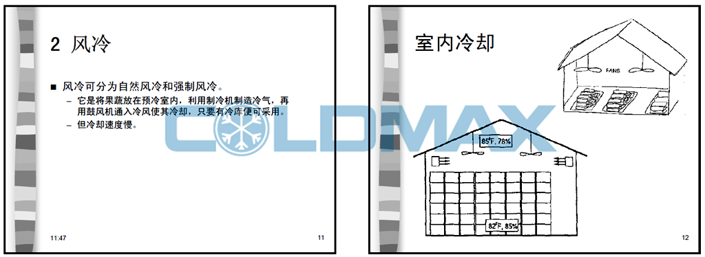 2. 预冷温度的要求:例如土豆储存及预冷的温度在十度以上,只需要风冷即可完成。
