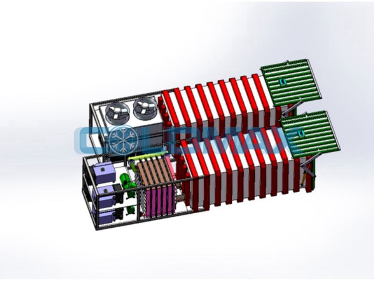 2.设备空间大小确认,以以上的例子,每个小时处理两吨果蔬,再以进出周转的箱子计算,需要15~16m?的空间才能完成果蔬的预冷。
