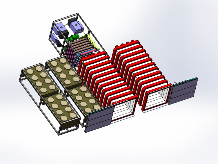 主要考虑将设备预冷的时间充分利用,提高设备系统的使用率;考虑在一个箱体进行预冷时一个箱体进出货,交叉运行提高效率;此方案主要针对中小型设备的使用;